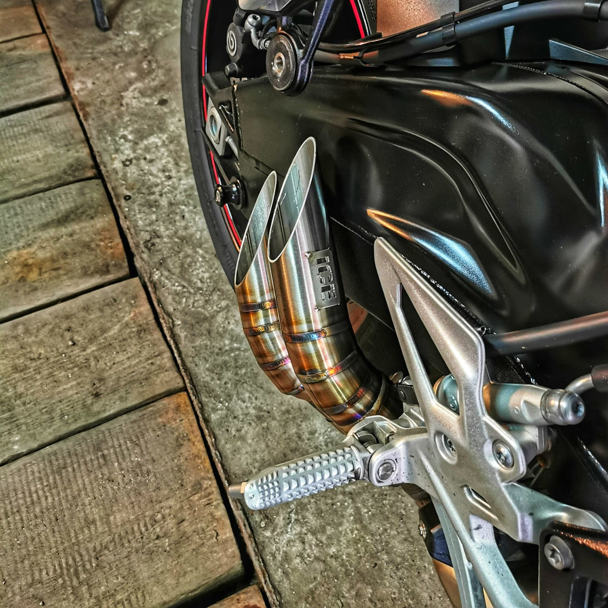 The presented tip has a unique design, which is ensured by discoloration of the metal resulting from joining the elements. Despite its great appearance, it will additionally have a positive effect on the sound of your engine, lowering its tone, which will give your motorcycle a unique character and allow you to enjoy its sound at every speed range.