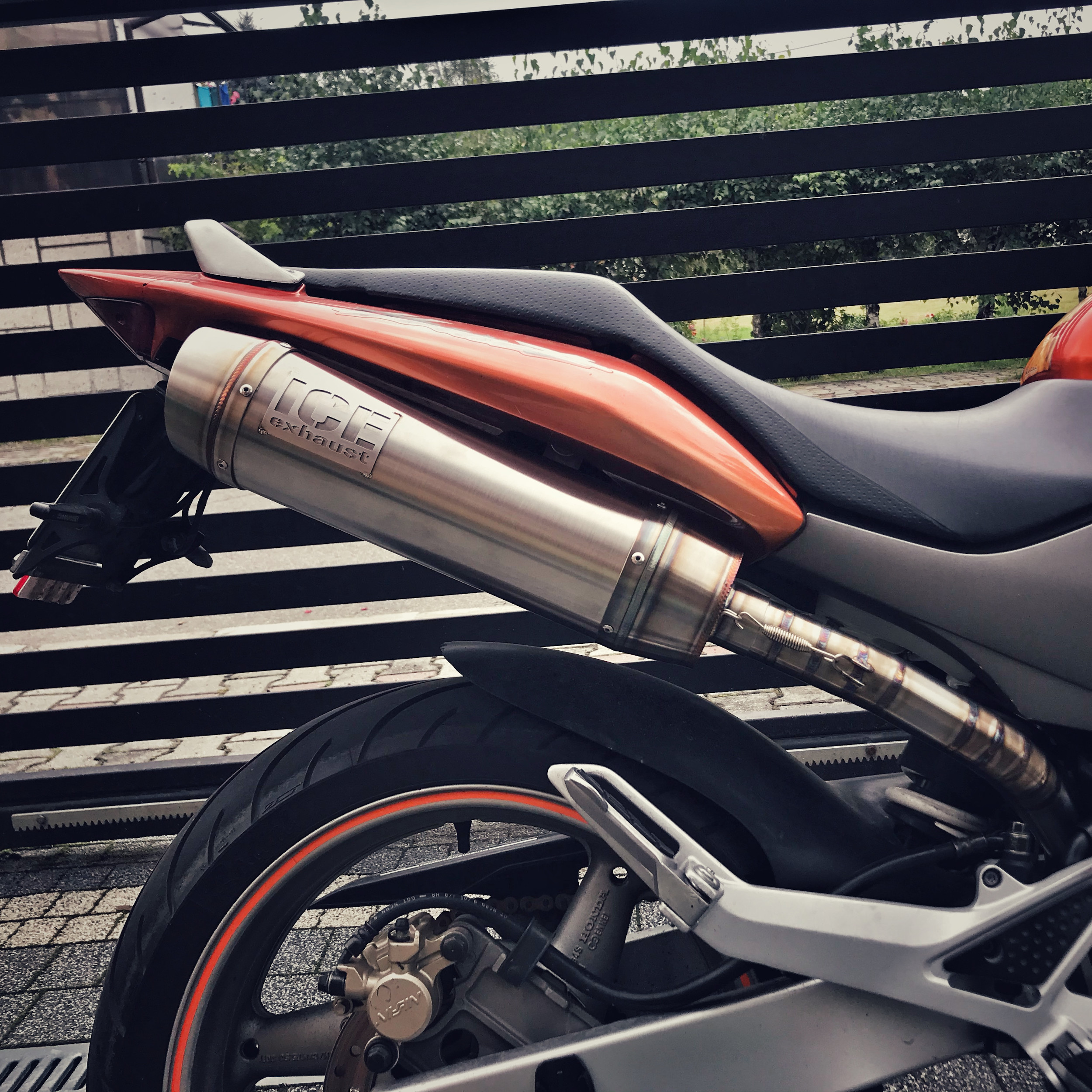 Prezentowany układy wydechowy posiada wyjątkowy design, który zapewniają przebarwienia metalu powstałe podczas łączenia elementów. Pomimo świetnego wyglądu, dodatkowo korzystnie wpłynie na brzmienie Twojego silnika, obniżając jego ton, co nada Twojemu motocyklowi niepowtarzalnego charakteru i pozwoli Ci cieszyć się jego dźwiękiem w każdym zakresie jego obrotów.