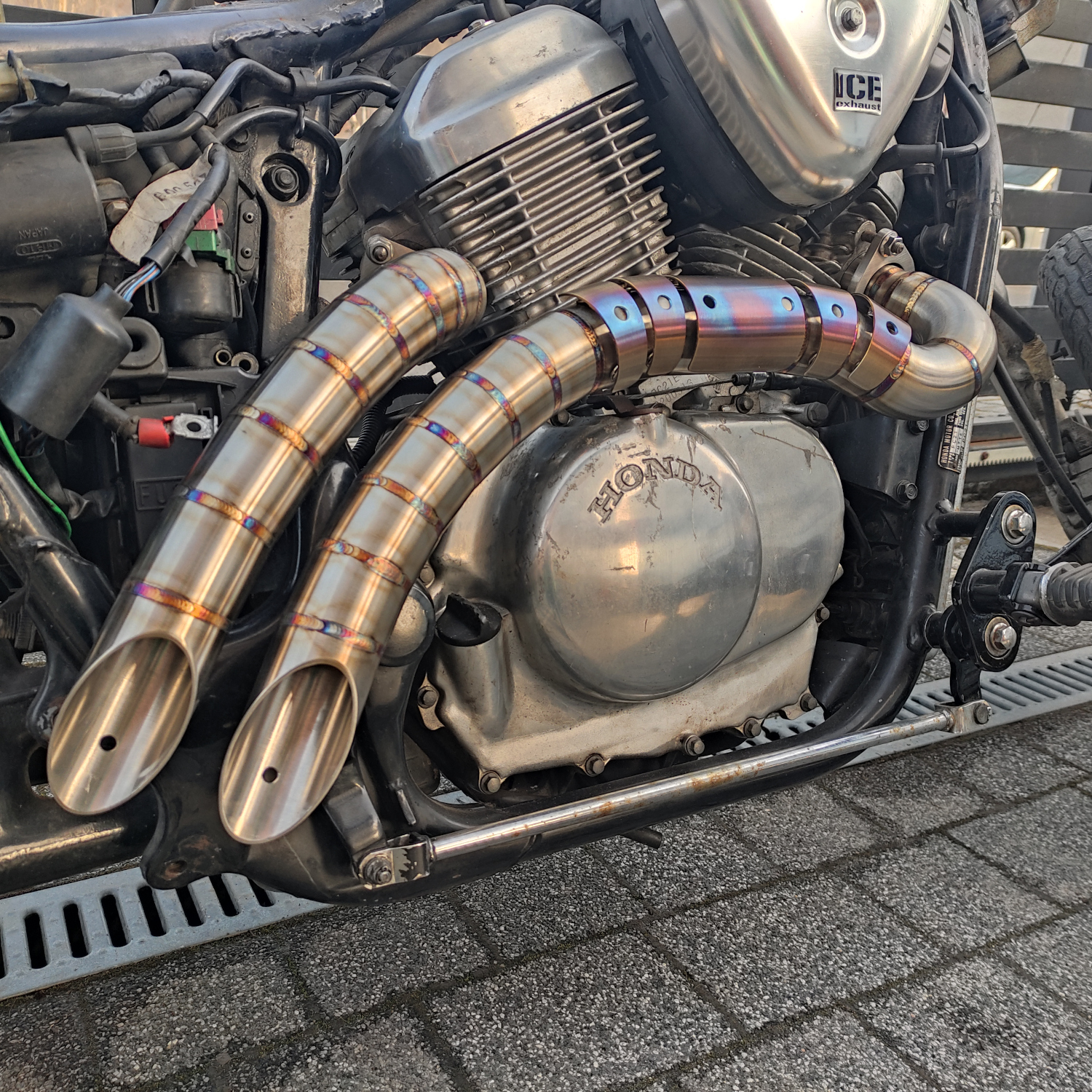 Prezentowany układy wydechowy posiada wyjątkowy design, który zapewniają przebarwienia metalu powstałe podczas łączenia elementów. Pomimo świetnego wyglądu, dodatkowo korzystnie wpłynie na brzmienie Twojego silnika, obniżając jego ton, co nada Twojemu motocyklowi niepowtarzalnego charakteru i pozwoli Ci cieszyć się jego dźwiękiem w każdym zakresie jego obrotów. Dodatkowo w miejscach narażonych na oparzenia zastosowane zostały osłony termiczne które uzupełniają niepowtarzalny wygląd.